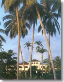 La ciudad de Malabo, capital del país, está llena de edificios coloniales de la época inglesa, cuando se llamaba Port Clarence y de los tiempos de dominio español, cuando se le denominó Santa Isabel. A primera vista Malabo parece una ciudad andaluza o antillana. La presencia sucesiva de portugueses, britanicos u de los españoles, que ocuparon la isla desde principios de siglo XV, asi como el paso de los comerciantes que trataban con las Antillas, han dado un caracter muy particular a us arquitectura, como las viejas casa con galerias, construídas de madera, del centro de la ciudad, que llevan la marca de las haciendas españolas con sius balcones de hierro forjado. Como encerrada en si misma tiene algo de andaluz y un aire de indolencia que flota en las calles rectas. Es sin duda la más silenciosa de las capitales africanas. |